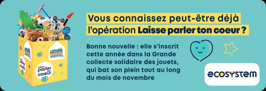 Parmi ses actions, nous avons choisi de conjuguer recyclage et utilité sociale en mettant un accent particulier sur la collecte de jouets organisée par ecosystem au profit de 61 associations à but non lucratif, dont l'objectif est de porter secours et assistance aux personnes en difficultés.