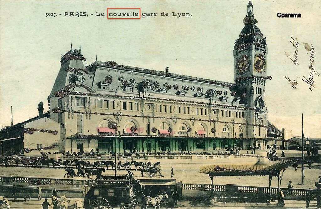 1900 : Les voyageurs visitant l’Exposition universelle de Paris arrivent dans une nouvelle gare de Lyon (III) à treize voies, dessinée par l'architecte toulonnais Marius Toudoire.