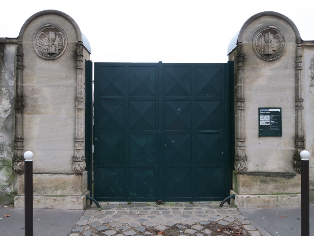 Ce sablier ailé est l'un des deux qui ornent le portail du cimetière de Bercy situé au 329 rue de Charenton (à l'angle avec l'avenue du Général-Michel-Bizot).