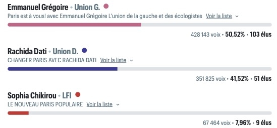 Avec 103 conseillers, démocratiquement élus parmi les 163 que compte le conseil de Paris, Emmanuel Grégoire devient de fait le nouveau Maire de Paris. Nous en prenons acte.