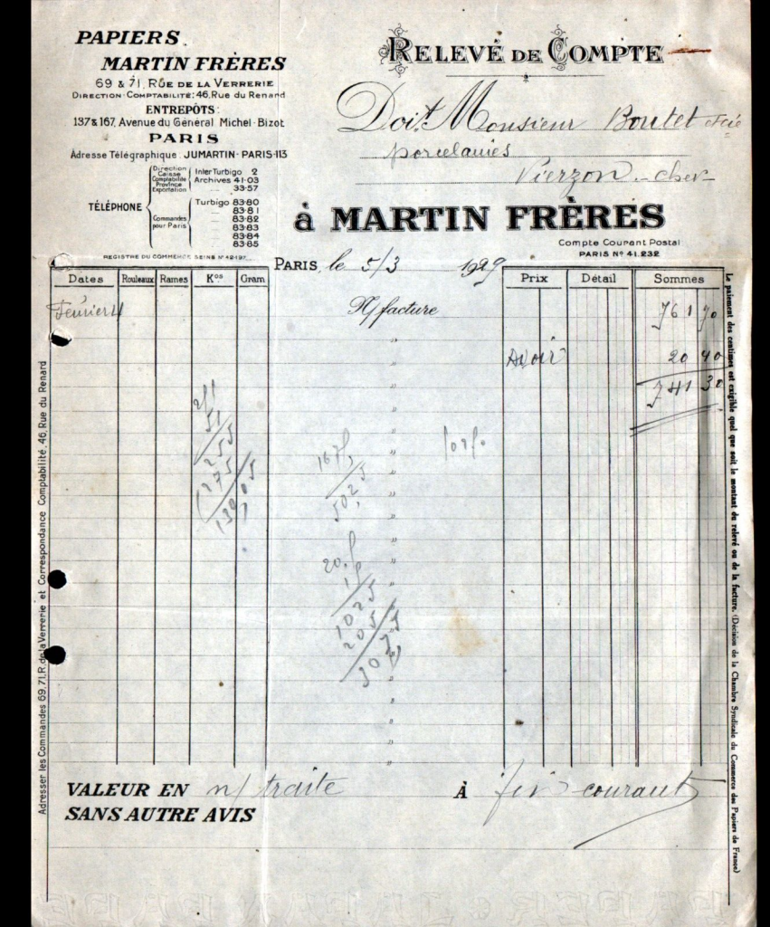 En poursuivant notre enquête, nous avons appris que les papeteries Martin Frères ont occupé une usine de production au 56 rue Emile Zola à La Courneuve entre 1925 et 1949.