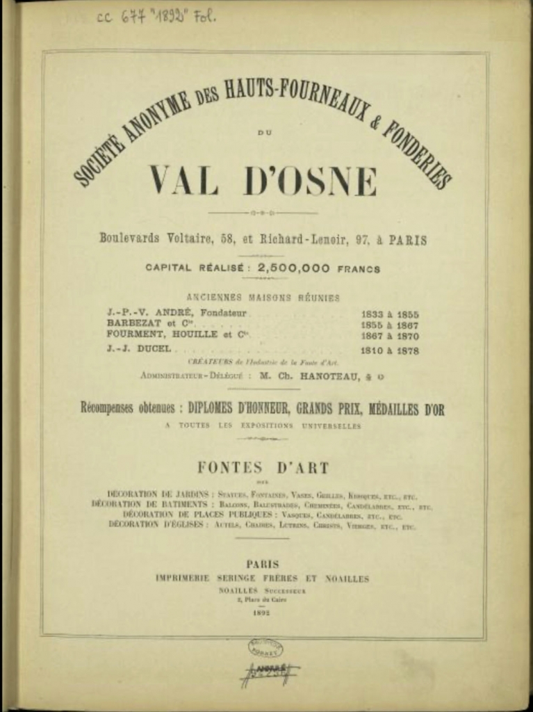 Celui dont nous vous avons soumis la photo est estampillé 1875 par la fonderie du Val d'Osne, mais bien qu'aucune source officielle ne permet d'indiquer combien de bancs portant expressément la marque « 1875 » sont encore visibles dans l’espace public parisien. Ils ne sont probablement que quelques dizaines à quelques centaines au maximum.