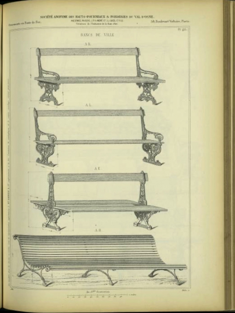 En 1869, 8 428 bancs sont installés dans la capitale. Au fil du temps, la majorité a été remplacée ou restaurée, et de nombreux exemplaires visibles aujourd’hui sont des rééditions ou des versions simplifiées plutôt que des pièces originales du XIXᵉ siècle.
